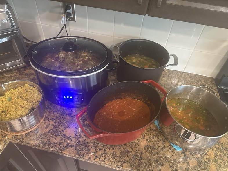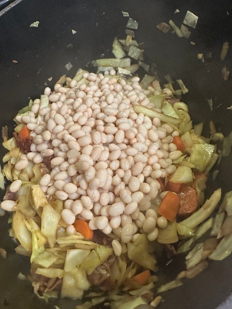 I consulted with ChatGPT, as one does. How can I stretch one pork chop into a meal to feed five? Pfft. Easy we both said as we high fived. I told her I’m thinking beans. She said great. We both thought.